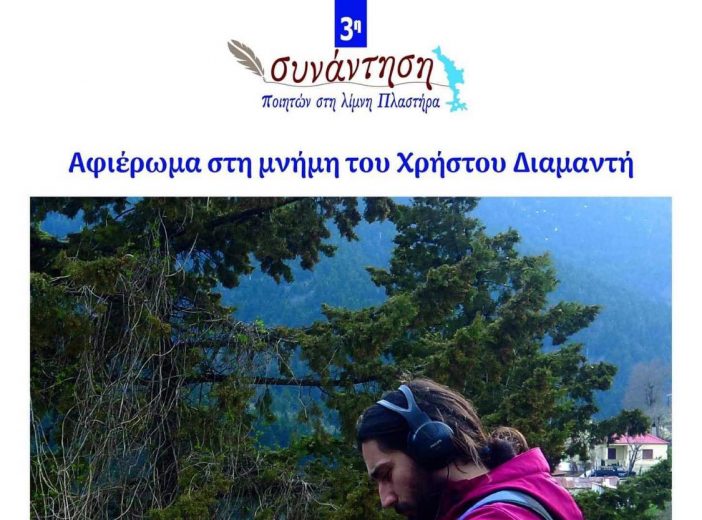 Ο Δήμος Λίμνης Πλαστήρα, σας προσκαλεί στην εκδήλωση τιμής και μνήμης του αδικοχαμένου ποιητή, μουσικού και φίλου Χρήστου Διαμαντή (1987-2021), που θα πραγματοποιηθεί το Σάββατο 5/11/2022 στις 17:00 στο Πολιτιστικό Κέντρο Φυλακτής. Θα αναγνωστούν ποιήματά του και θα παιχτούν μουσικά του κομμάτια. Σας περιμένουμε όλους εκεί!