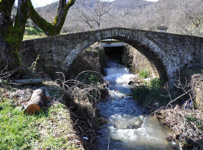 There are taverns, traditional cafes and guesthouses. The visitors will find a unique view and cool breeze during the summer months and warmth during the winter. There is also a wide variety in dishes, local wine and tsipouro, low prices and friendly services all over the year. On the outskirts of the village, on the road and next to the new bridge, there’s an arched stone bridge which is dated in the late of the 18th century or at the beginning of the 19th. The size of the arch of the bridge is 6 m and its height is 3 m. It has a total length of 10 m and a width of 2.20 meters. The village is surrounded by evergreen forests and the adjacent peaks of hills that offer a stunning view in the vast Thessalian plain. Going up to the narrow and winding road to the Plastiras lake, the view is prodigious. In the evenings, the rich and colorful lighting of the immense plain of Thessalia and the yellow bright line of metallic conductor, create a feeling of the uniqueness and make the journey enjoyable.