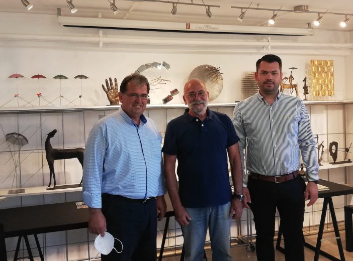 β) Με τον κ. Νίκο Θεοχαρίδη, πρόεδρο του «Ιδρύματος Γ. Ζογγολόπουλος», συζητήθηκε η συνεργασία για την εγκατάσταση του έργου «Ειράνα» του Ζογγολόπουλου στο Υπαίθριο Μουσείο Σύγχρονης Τέχνης στη Λίμνη Πλαστήρα, ένα από τα ελάχιστα έργα που εντάχθηκαν στο πρόγραμμα “Ελλάδα 2021” για τα 200 χρόνια απο την Επανάσταση του 1821.