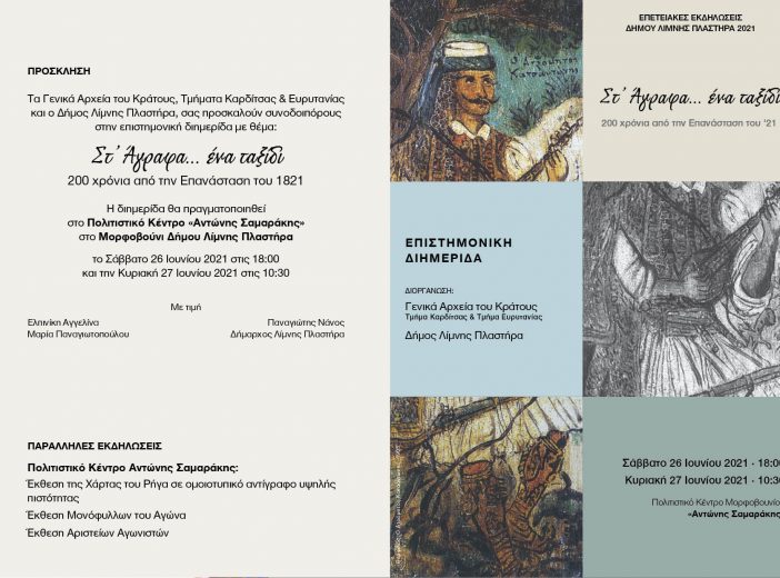Συνεχίζονται το Σαββατοκύριακο οι επετειακές εκδηλώσεις του Δήμου Λίμνης Πλαστήρα για τα 200 χρόνια από την Επανάσταση του 1821, τις οποίες συνδιοργανώνει με τα Γενικά Αρχεία του Κράτους Καρδίτσας και Ευρυτανίας.