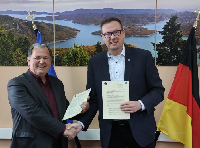 Ακολούθησε εκτενής διάλογος και μετά την σύσκεψη υπογράφηκε το σύμφωνο συνεργασίας στην Ελληνική και Γερμανική γλώσσα, ενώ δόθηκαν αναμνηστικά δώρα εκατέρωθεν. Ακολούθως επισκέφθηκαν τον χώρο όπου θα δημιουργηθεί το Υπαίθριο Μουσείο Σύγχρονης Τέχνης, όπου έγινε ξενάγηση από τον δήμαρχο κ. Νάνο.